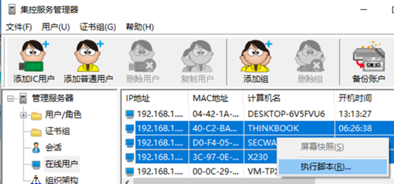 1、 集控服务管理器打开“在线用户”,选中需要设置的客户机 2、 右键菜单->执行脚本 在“运行脚本”对话框的“模板”中选择“拖放自动打包”。 3、 按脚本开头处的说明选择需要开启自动打包的应用 AUTOPACK_QQ:对应QQ AUTOPACK_WEIXIN:对应微信软件 AUTOPACK_WXWORK:对应企业微信 AUTOPACK_DINGTALK:对应钉钉 AUTOPACK_OUTLOOK:对应Outlook邮件 AUTOPACK_FOXMAIL:对应Foxmail邮件客户端 AUTOPACK_FEIQ:对应飞秋 以上设置为1为自动打包,设置为0关闭 4、 配置完成后,点“确定”按钮 通过以上配置,客户机把加密文件拖放到开启自动打包的应用窗口时,待传输的文件会自动打包成加密的enc文件,这个文件可以安全地在互联网传输。即使这些通讯软件在云端留下传输副本,没有secWall的企业通行证,文件也是无法打开的,这样可以保证通过互联网传输的敏感文件不会因进入公网而涉密。 二、 使用自动打包的注意事项